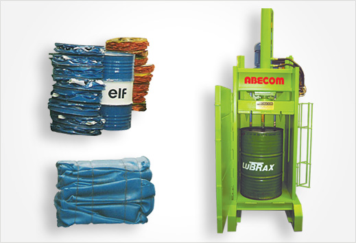 • Modelos CTEVS y CTEVA 11070/20T: Para la compactación de Tambores metálicos y plásticos y el enfardado de materiales varios (papel, cartón, plásticos, etc.), con bandeja colectora de líquidos