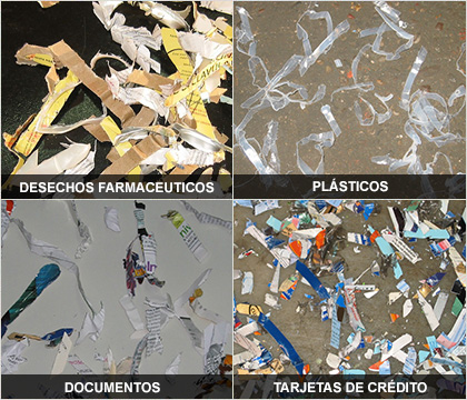 Trituradoras aptos para Papel, Cartón, Plásticos, Documentos, Residuos farmaceuticos, CD´S, Diskettes, Tarjetas de crédito, Vidrio, Etc.